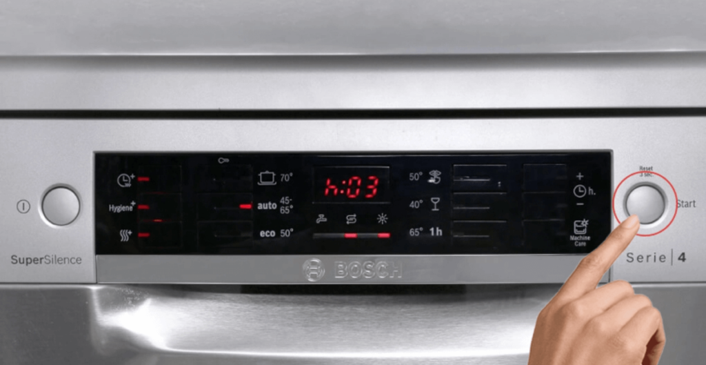 Một trong những lỗi phổ biến nhất khi người dùng mới bắt đầu thao tác là không thể truy cập vào chế độ cài đặt. Nguyên nhân thường do người dùng không giữ đúng tổ hợp phím hoặc giữ không đủ lâu. Trên hầu hết các dòng Bosch hiện nay, bạn cần nhấn giữ nút “Start” cùng một nút chức năng (tùy dòng máy) trong khoảng 3–5 giây mới truy cập được menu cài đặt.