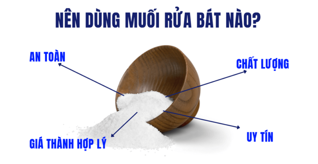 Nên dùng các loại muối uy tín như Finish, Somat, Denkmit hoặc muối do Bosch khuyến nghị. Giá muối chuyên dụng dao động từ 80.000 – 150.000 VNĐ/kg, dùng được trong 1 – 2 tháng tùy theo nhu cầu.