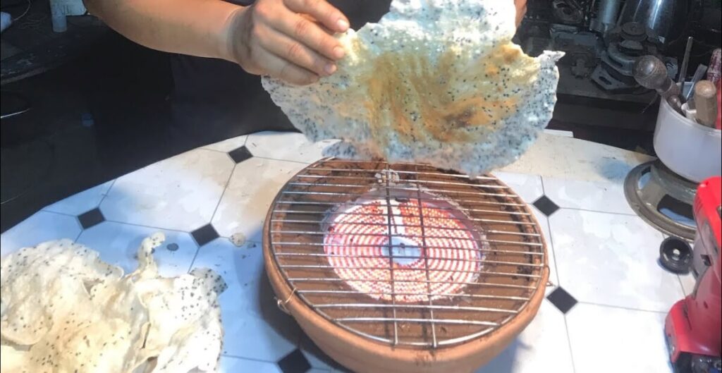 - Nướng mỗi mặt khoảng 3 – 5 phút, tùy độ dày bánh và mức nhiệt.