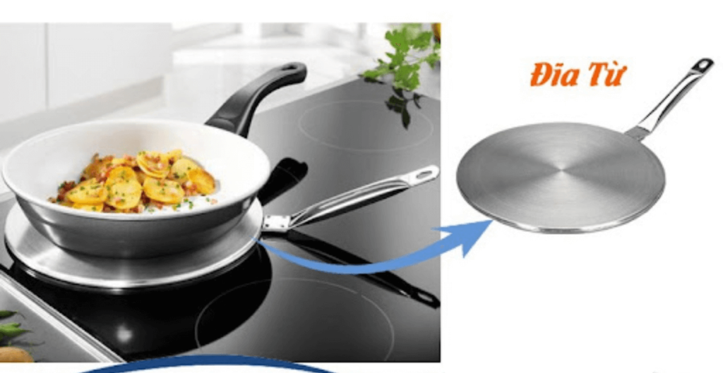 1. Sử dụng đế nhiễm từ (tấm lót bếp từ)